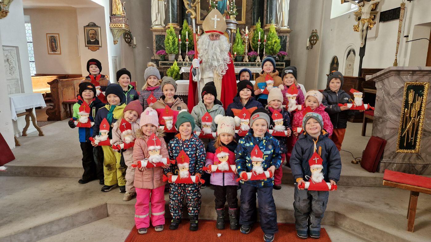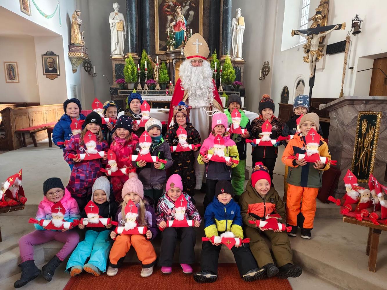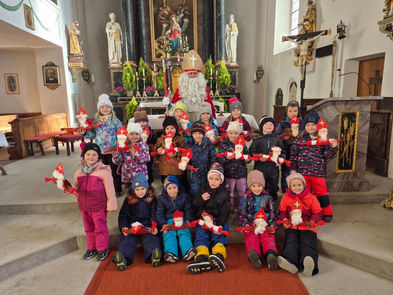 Mit viel Spannung und Aufregung machten wir uns auf den Weg. In der Kirche angekommen standen unsere selbst gebastelten Nikoläuse, die am Vortag plötzlich in unseren Gruppen verschwunden waren.